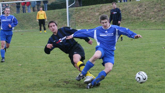 (links) und sein Binzger Gegenspieler Stefan Matt diesen Zweikampf. Der FC